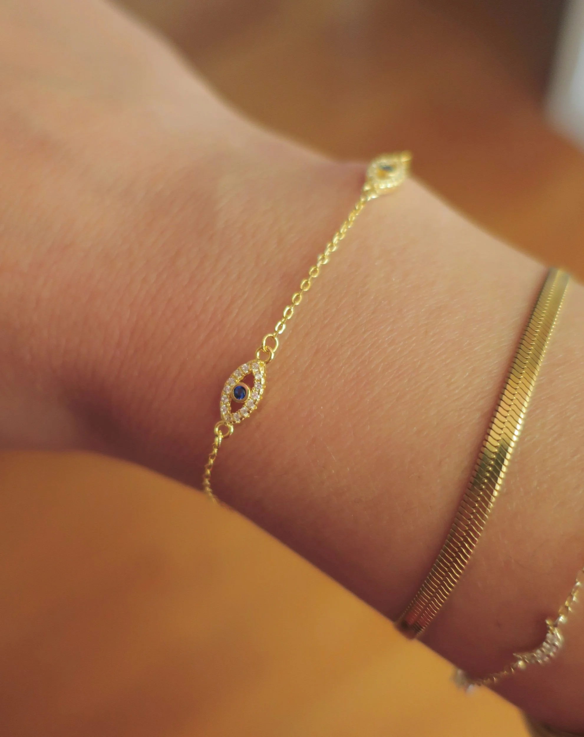 Meet Miriam, little macaron’s take on a classic Middle Eastern symbol, this delicate bracelet features three deep midnight blue “eyes”, each surrounded by dainty zirconia stones. While we’re not superstitious at little macaron, we are firm believers in positive energy and manifestations; so here’s our heartfelt pure wishes for the wearer- may you forever be surrounded by light, joy, and positive energy in your life.